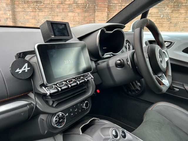 Custom made for the A110, it uses 2 screws that are already on the vehicle, you unscrew the 2 screws behind the screen, place the mount in place and then replace the screws with the ones provided with the VMount.