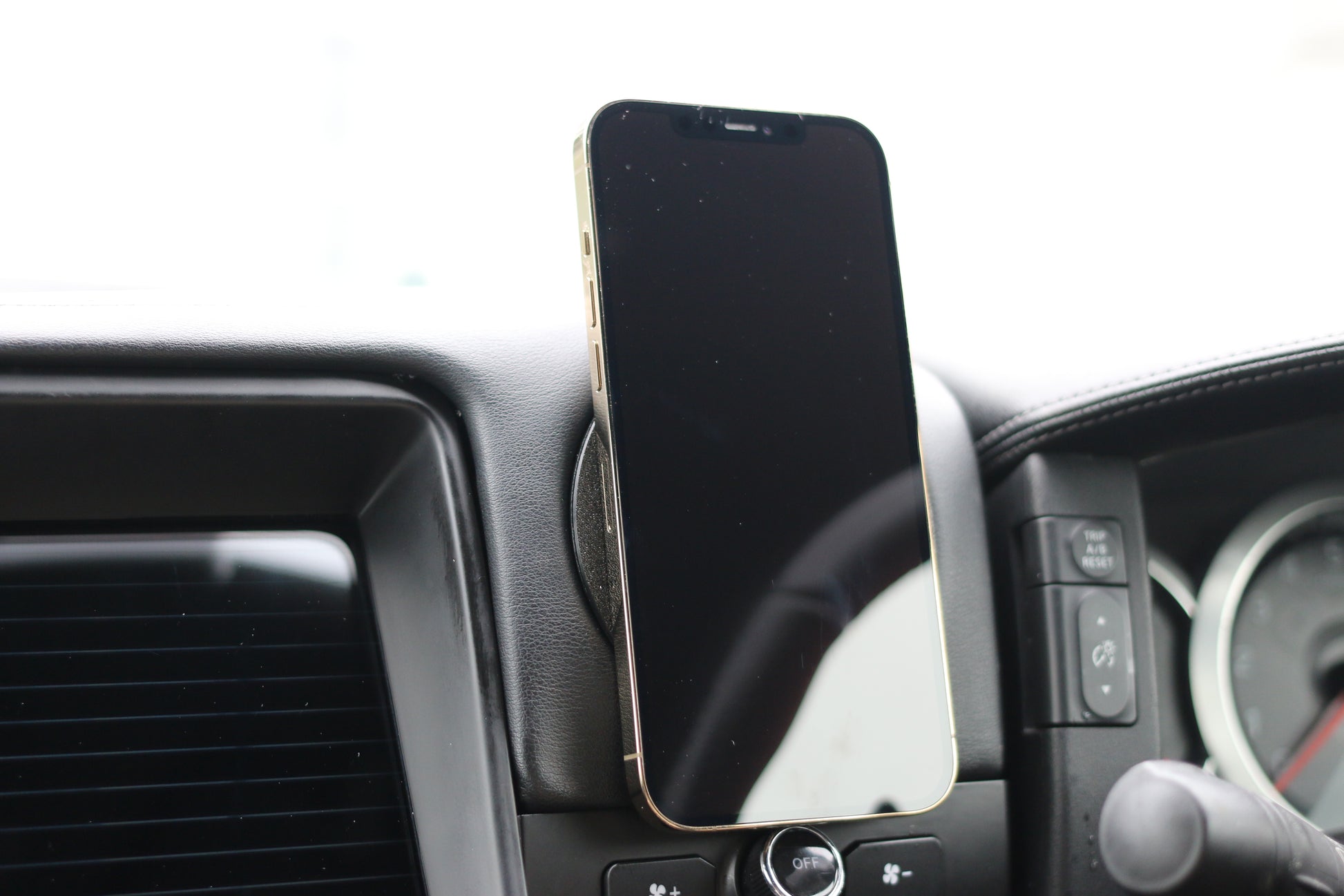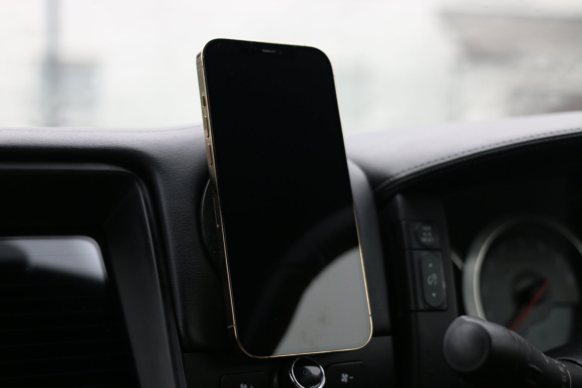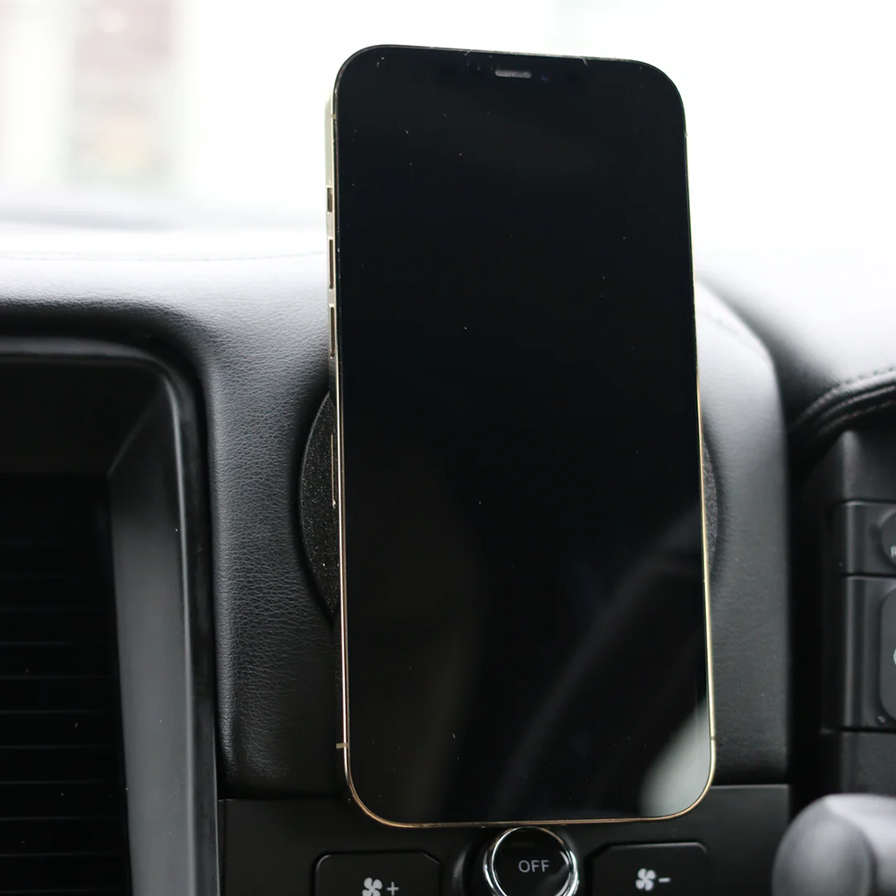 The mount uses MagSafe technology to allow you to magnetically mount your iPhone 12 onwards phone and any other phone with a MagSafe case or MagSafe ring attached.
